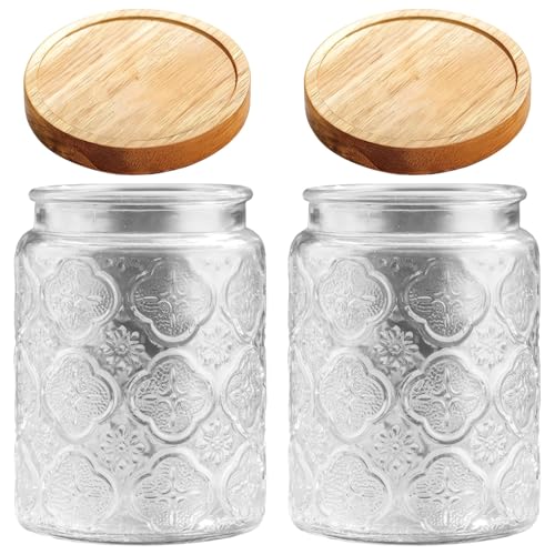 Deskium Lot de 2 bocaux de cuisine en verre, 700 ml, couvercle en bois, 9 x 13 cm