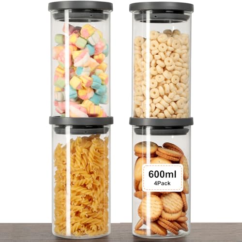 VINATO 4 Bocaux en Verre Hermétiques Sans BPA, Set de Récipient en Verre Avec Couvercle pour Cuisine (600ml), Stockage Aliments Secs