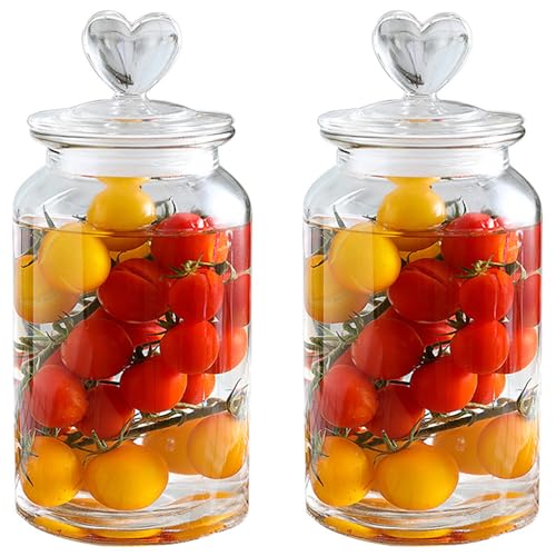 HomeyHoney Bocaux en Verre,Bocal en Verre avec Couvercle en Forme de Cœur,Lot de 2 Bocaux de Conservation Hermétiques,1300 ml Bocaux Rangement Cuisine pour Bonbons,Chocolats,Biscuits