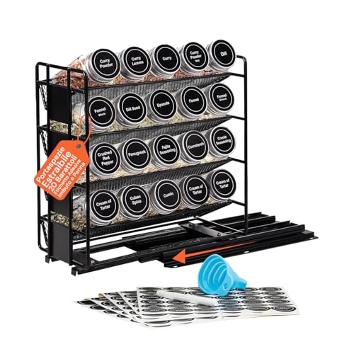Avilia - Porte-épices pour cuisine avec 20 bocaux en verre, structure amovible, peu encombrante, étiquettes étanches, entonnoir en silicone et stylo inclus