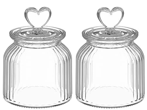 HomeyHoney Bocaux en Verre,Bocal en Verre avec Couvercle en Forme de Cœur, Lot de 2 Bocaux de Conservation Hermétiques,650 ml Bocaux Rangement Cuisine pour Bonbons, Chocolats, Biscuits,Rayures