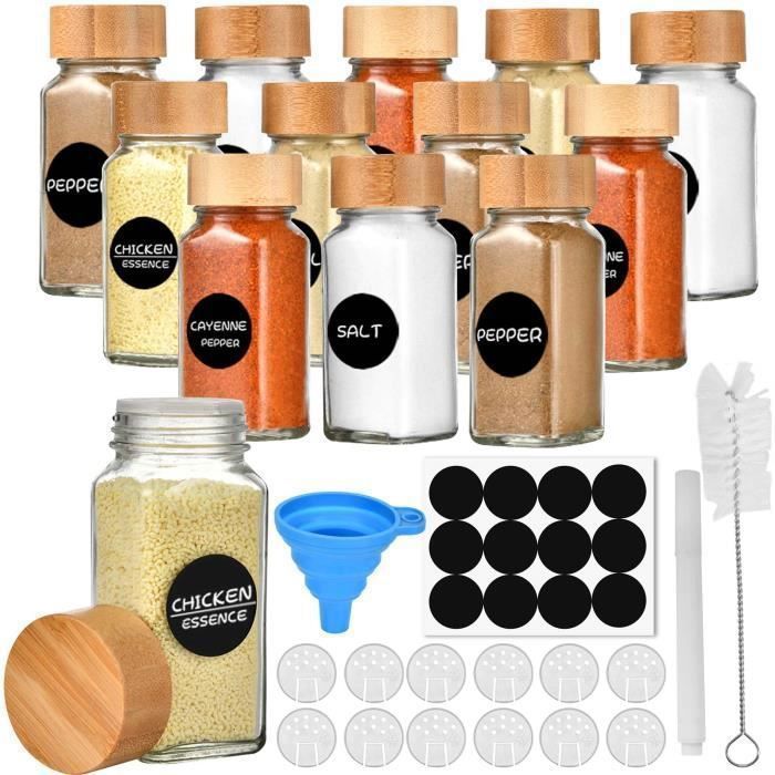 20x Pot en Verre Carré pour Épices 50ml avec Couvercle - Bocaux Rangement Cuisine - Épices Confiture