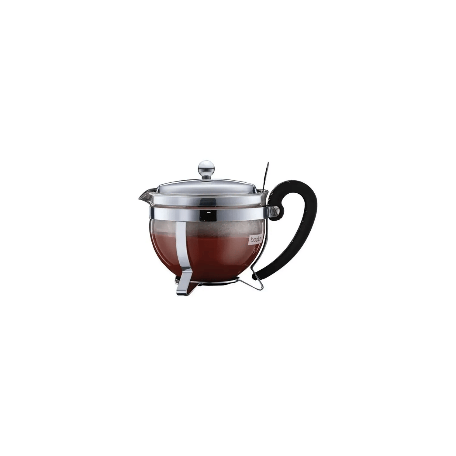 Bodum - K11143-16 - Chambord - Set Théière à Piston - Filtre en Plastique - Réchaud en Inox - 1,3 L, Argent/Noir