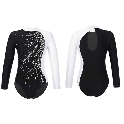 TRRYUIP Justaucorps Gymnastique Fille Justaucorps de Gymnastique for Filles, Combinaison, Costume Danse Classique, Dos Nu, col Montant, Body Sport for Le Yoga et la(White,14)