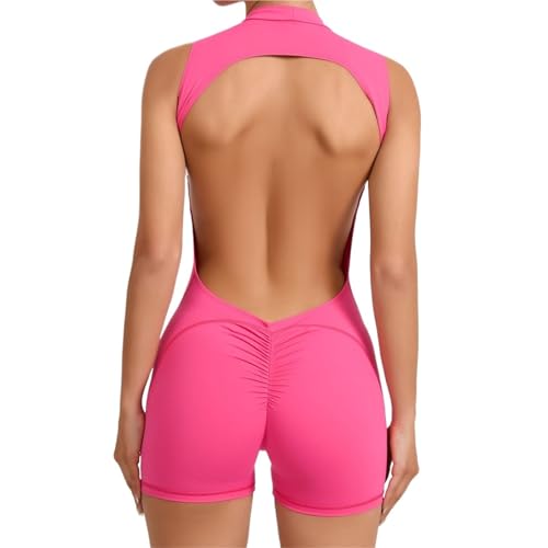 RUHTEUO Body de Yoga Dos Nu Ensemble de Yoga sans Manches for Femmes, Salopette à la Mode, Dos Nu, col Rond, Barboteuse Sportive, Fitness, Body Combinaison Sport Femme(Pink,M)