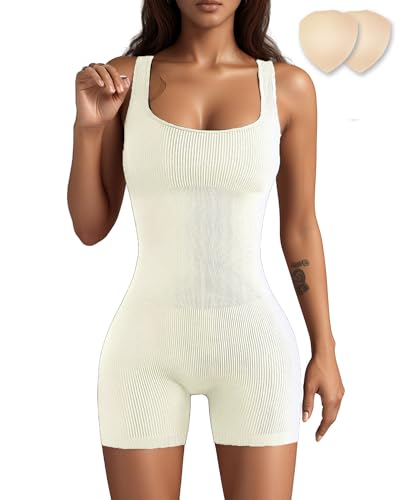 Merlvida Combinaison Sport Courte Femme Jumpsuit Fitness Sans Couture Body Push Up Sculptant Tenue Sport Élastique Ajustée Vêtements d'Été Pour Gym Yoga Jogging