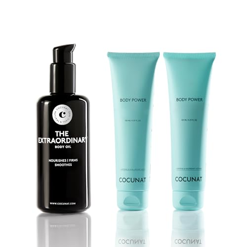 COCUNAT - Pack Body Power + Huile Corporelle Anti-vergetures - Raffermit, Réduit la Cellulite et Prévient les Vergetures - Peau Hydratée et Lisse - Ingrédients Naturels - Sans Toxines - Végan