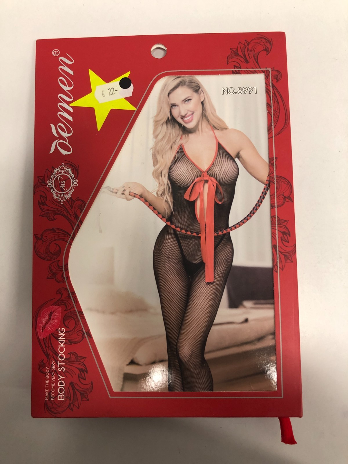 Öèmen Combinaison Sexy Résille Noire Noeud Rouge Body Jarretelles NO.8991 Neuf