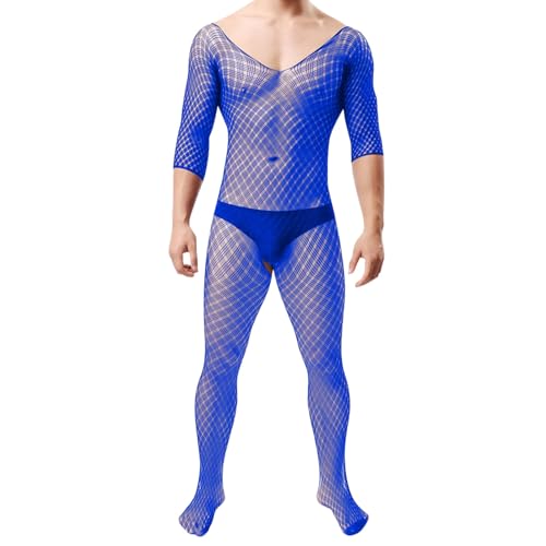 Générique sous VêTements Homme Sexy,Body Transparent avec Design Haute éLasticité Devant Et Dos Ajouré Combinaison Transparente Lingerie éLéGante pour Lui (Blue, One Size)