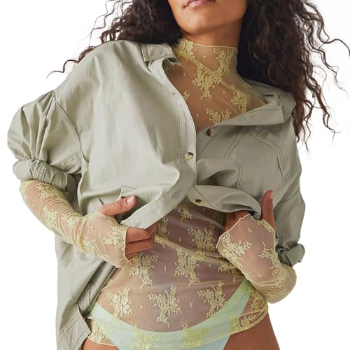 Chemises à manches longues pour femme - Haut élégant en maille - Chemisier transparent - Chemisier sexy - Haut de fête - Chemisier en dentelle - Body transparent - Body sexy