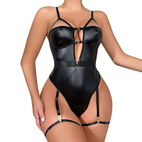 Lingerie Sexy Femme Coquine Hot, Tenu Wetlook Lingerie Cuir Bretelles Moulante Body Latex Érotique Bodycon Dos Nu Babydoll Mini Robe Courte Bodys Pute Hard Catsuit Ouverte Ensemble