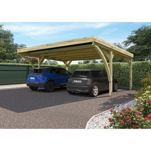 Carport toit plat - Bois traité autoclave - 2 voitures - 30,9m² - VICTOR