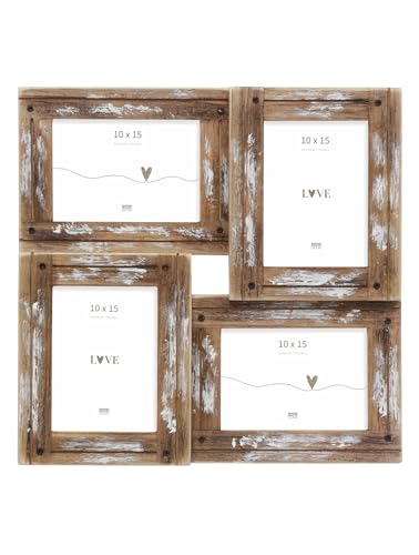 DEKNUDT Frames - Multivue en bois flotté avec une finition blanc pour 4 photos - pour photo 10 x 15 cm - Marron - cadre photo - S67UD1P4 - à poser