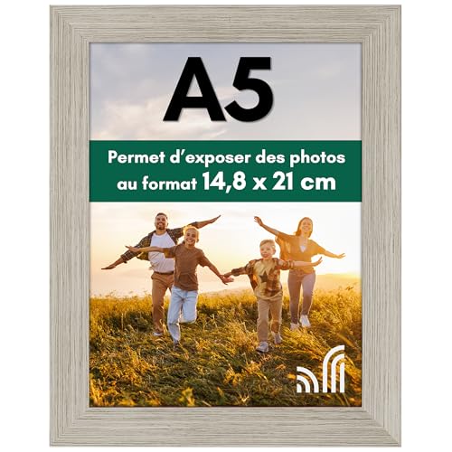 Americanflat Cadre Photo A5 Bois Flotté - MDF avec Verre Incassable Poli, Chevalet & Matériel de Suspension Intégré - Format Horizontal et Vertical pour Mur et Dessus de Table - 14,8x21 cm