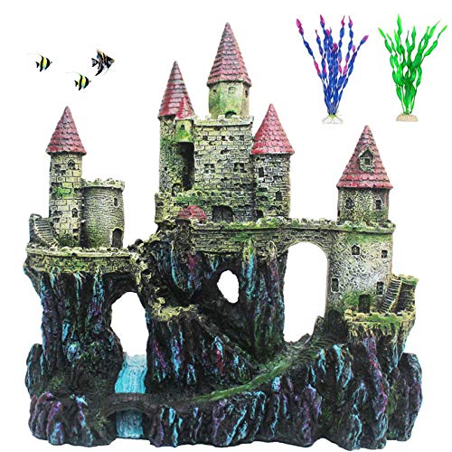 PINVNBY Château en résine pour Aquarium - Décoration pour Aquarium - Bois flotté - Cachettes - Plantes d'intérieur - Accessoires (Rouge)