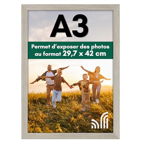 Americanflat Cadre Photo A3 Bois Flotté - MDF avec Verre Incassable Poli - Format Horizontal et Vertical pour Mur - 29,7x42 cm