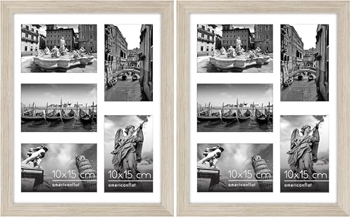 Americanflat Cadre Photo Bois Flotté en MDF 28x35 cm - Affichage de Cinq Photos 10x15 avec Fond et 28x35 sans Fond - Verre Résistant aux Chocs - Formats Horizontaux et Verticaux pour le Mur (Lot de 2)