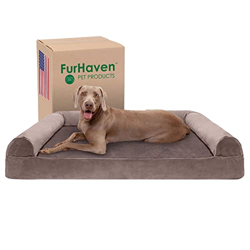 Furhaven Lit pour Chien en Gel rafraîchissant pour Grands Chiens avec traversins Amovibles et Housse Lavable, pour Chiens jusqu'à 56,7 kg – Canapé en Fausse Fourrure et Velours – Marron Bois flotté,