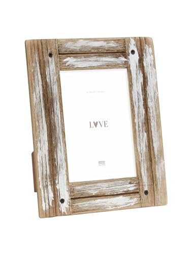 DEKNUDT Frames - Cadre photo en bois flotté avec une finition blanc - pour photo 10 x 15 cm - Marron - cadre photo - S67UD1 - à poser ou à accrocher