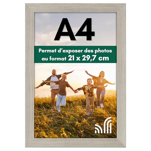 Americanflat Cadre Photo A4 Bois Flotté - MDF avec Verre Incassable Poli, Chevalet & Matériel de Suspension Intégré - Format Horizontal et Vertical pour Mur et Dessus de Table - 21x29,7 cm