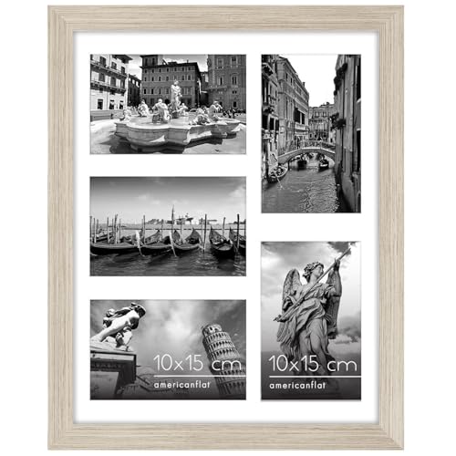 Americanflat Cadre Photo Bois Flotté en MDF 28x35 cm - Affichage de Cinq Photos 10x15 avec Fond et 28x35 sans Fond - Verre Résistant aux Chocs - Formats Horizontaux et Verticaux pour le Mur