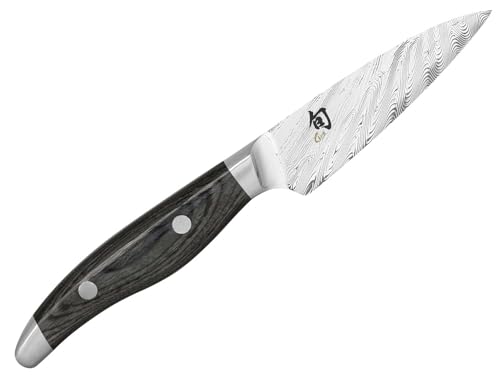 KAI Shun Nagare Black Couteau d'Office 9 cm - 72 couches acier damassé lame à double noyau VG 2 & VG 10 - bois de pakka noir - fabriqué à la main au Japon - couteau à légumes, couteau d'office forgé