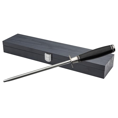 ZOLMER® Fusil - Aiguiseur de couteaux en acier trempé - Fusil avec poignée confortable en bois de Pakka - Aiguiser les couteaux comme un professionnel