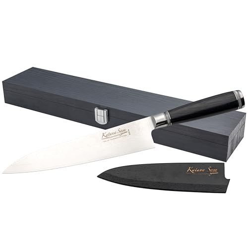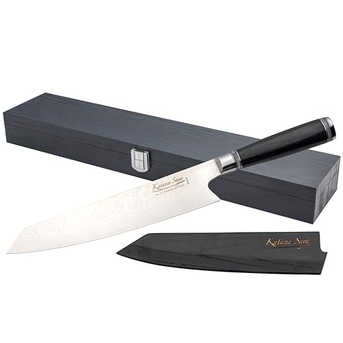 Katana Saya 20 cm Couteau de chef, acier inoxydable Damas VG-10 67 couches, manche en bois de pakka,