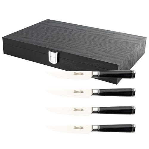Katana Saya Ensemble de 4 couteaux à steak, acier VG-10 Damas, manches en bois de pakka, noir