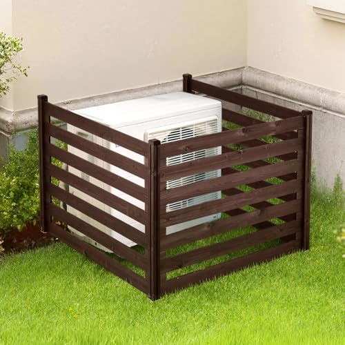 VEVOR Panneau de Clôture Bois 3 PCS Cache Climatiseur Extérieur 81x96 cm Clôture Décorative en Bois Massif pour Cacher Poubelle Embellir Jardin, Angle Ajustable, Structure Renforcée avec Charnières