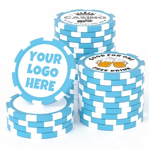 Shueewago 200 jetons de poker personnalisés pour 12 couleurs, imprimez votre propre logo personnel, texte et image, bon pour jeton de boisson, jetons de bar, fête, golf et cadeaux de mariage