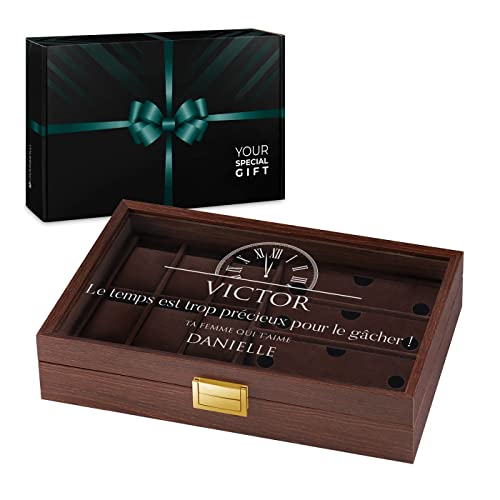 Maverton Boîte à 6 montres personnalisée en bois - 31 cm x 11 cm x 8 cm - Coffret pour une collection de montres - Cadeau pour collectionneurs - Pour homme - Destinataire