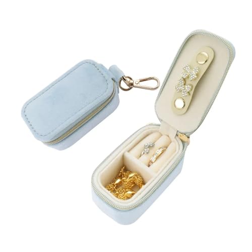 LUYSGBXR Boite A Bijoux Voyage Mini boîte à bagues en velours, mallette de rangement de bijoux, boucles d'oreilles, organisateur de colliers, sac à fermeture éclair, voyage Portable(Blue)