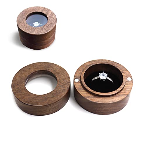 Mamiddle Boîte à Bagues en Bois de Noyer Intérieur Souple en Velours Boite de Présentation pour Boucles D'oreilles et Bijoux en Bois pour Cérémonie de Fiançailles et Mariage (Cercle-Fenêtre)