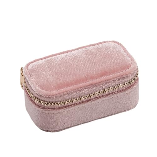 LUYSGBXR Boite A Bijoux Voyage Mini boîte à bagues en velours, mallette de rangement de bijoux, boucles d'oreilles, organisateur de colliers, sac à fermeture éclair, voyage Portable(Pink)