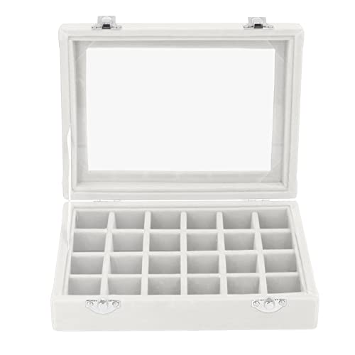 Glomora Boite a Bijoux Femme Fille, Boîte à Bijoux en Velours Verrouillable avec 24 Compartiments Interchangeables - Organisateur De Boucles d'oreilles Compact Et étui De Rangement(Blanc)