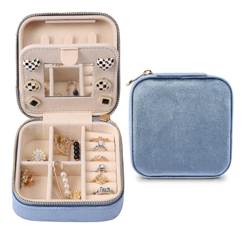 Dajasan Boite a Bijoux Voyage, Petit Boite Bijoux, Boite à Bijoux Femme, Boîte à Bijoux Velours, Organisateur Bagues, Boucles d'oreilles, Colliers Bracelets (Bleu)