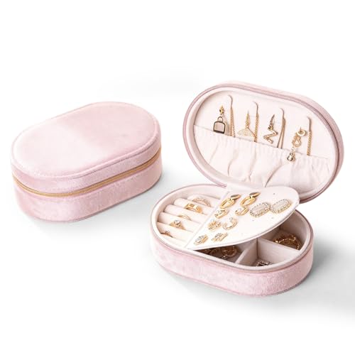 Dajasan Boite Bijoux Voyage, Boîte à Bijoux Femme, Petite Boite a Bijoux, Boîte à Bijoux Velours, Boîtes à Bijoux pour Femme, Fille, Mère, Enfants, Grand-Mère(Rose)