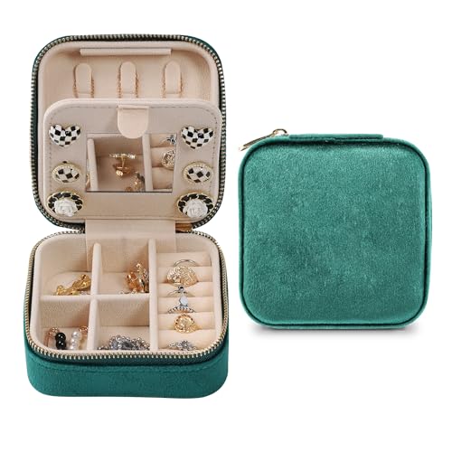 Dajasan Boite Bijoux Voyage, Boîte à Bijoux Femme, Boîte à Bijoux Velours, Petit Boite Rangement Bijoux, Boite a Bijoux pour Bagues, Boucles d'oreilles, Colliers, Bracelets (Vert)