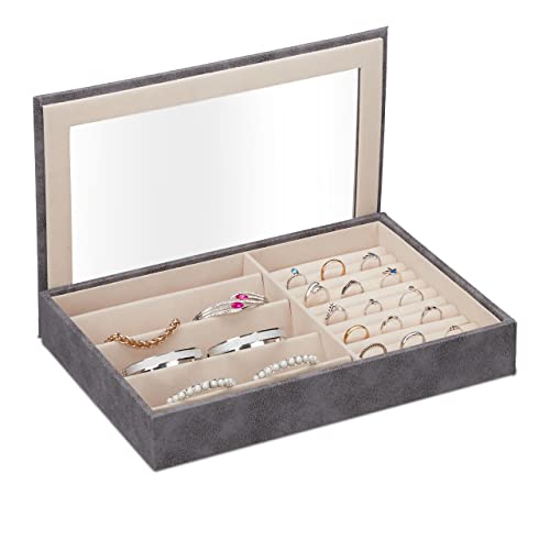 Relaxdays Boîte à Bijoux, Effet Cuir, Velours, écrin pour Hommes et Femmes, Rangement, HxLxP : 13 x 34 x 31 cm, Gris