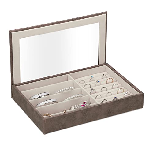 Relaxdays Boîte à Bijoux, Effet Cuir, Velours, fenêtre de visualisation, HxLxP : 5x30x21 cm, Range-bagues, Marron