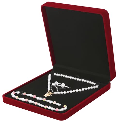 LETURE Boîte à bijoux en velours pour bracelet, collier, boucles d'oreilles, bague (rouge)