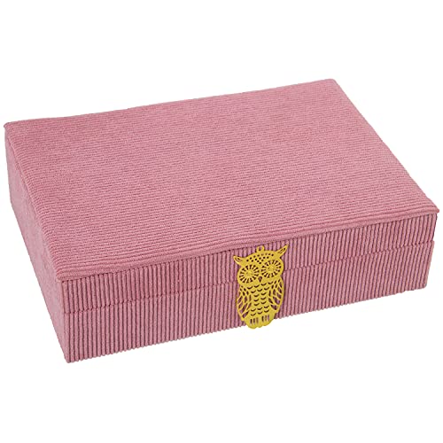 DRW Boîte à bijoux rectangulaire en velours côtelé rose 28x20x7cm