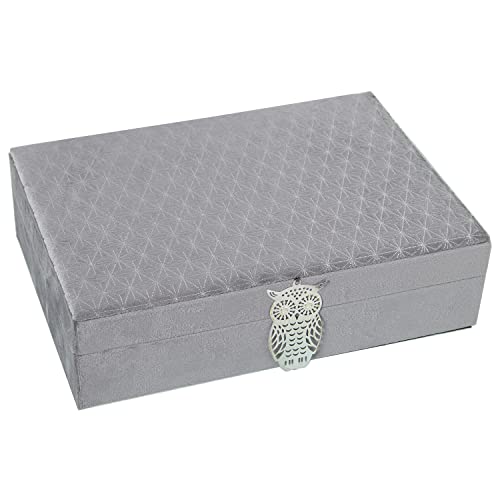 DRW Boîte à bijoux rectangulaire en velours avec dessin gris 28x20x7cm