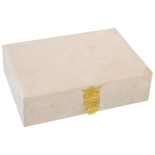 DRW Boîte à bijoux rectangulaire en velours crème 28 x 20 x 7 cm