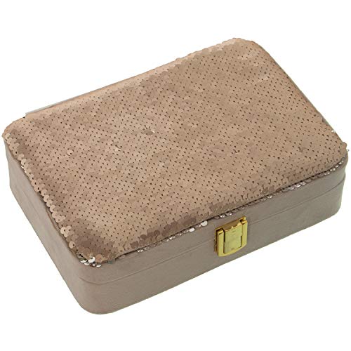 DRW Boîte à bijoux en velours avec paillettes Beige 20,5 x 15 x 5,5 cm