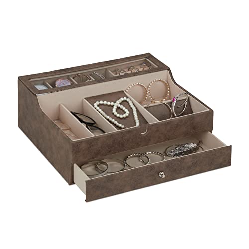 Relaxdays Boîte à Bijoux, Effet Cuir, Velours, écrin pour Hommes et Femmes, Rangement, HxLxP : 13 x 34 x 31 cm, Marron