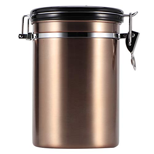 Natudeco Naudeco Boîte a Café Hermetique En Acier Inoxydable avec valve d'évacuation Boîte de rangement scellée Pour La Farine, Les Haricots, Le Thé (Or)