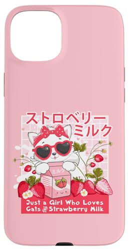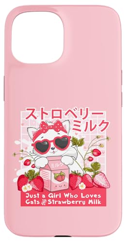 Adorable boîte à Lait Kawaii Chat Fraise Design inspiré de l'anime Coque pour iPhone 15 Plus