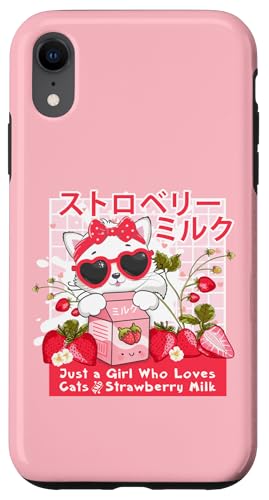 Adorable boîte à Lait Kawaii Chat Fraise Design inspiré de l'anime Coque pour iPhone XR